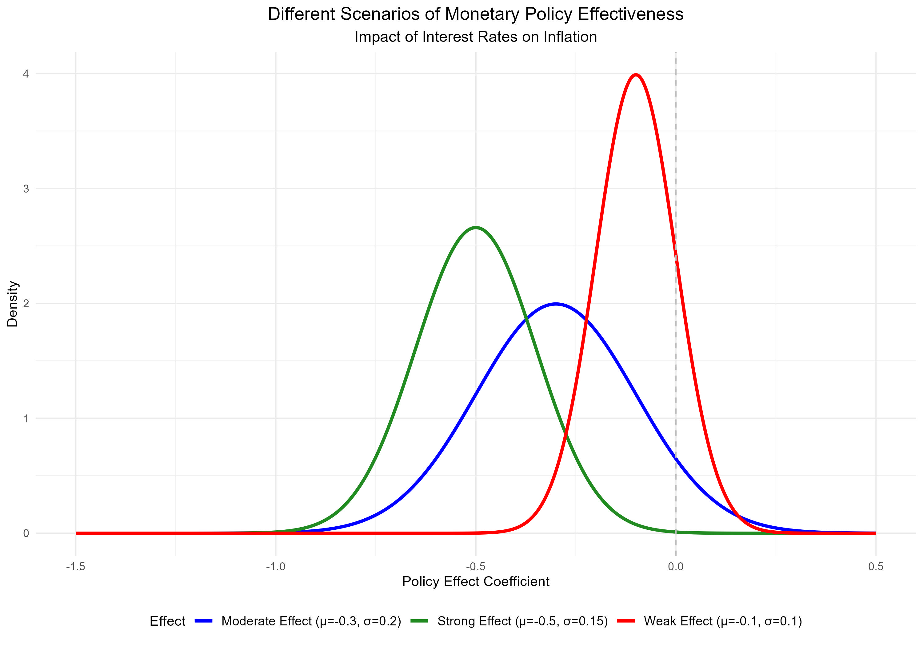 When analyzing how interest rates affect inflation, central banks consider different scenarios about policy effectiveness: